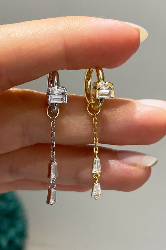 İki Zincir Sallantılı Taşlı Lotus Gümüş Küpe