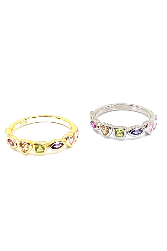 İnce Mix Ve Rainbow Yarım Tur Gümüş Yüzük