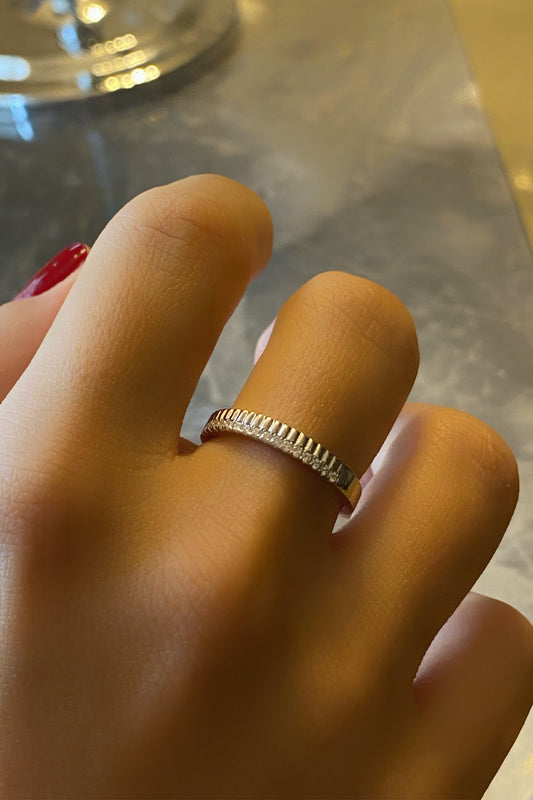 İnce Taş Sıralı Ve Tırtıklı Gümüş Yüzük