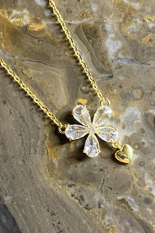 Kalp Sallantılı Damla Papatya Gümüş Kolye