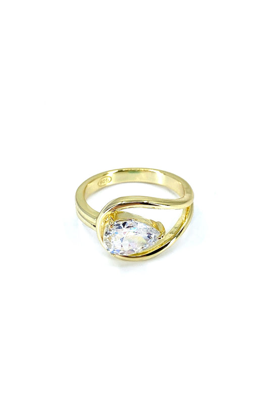 Kalp Ve Yarım Tur Taşlı Gümüş Yüzük