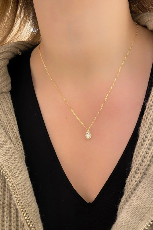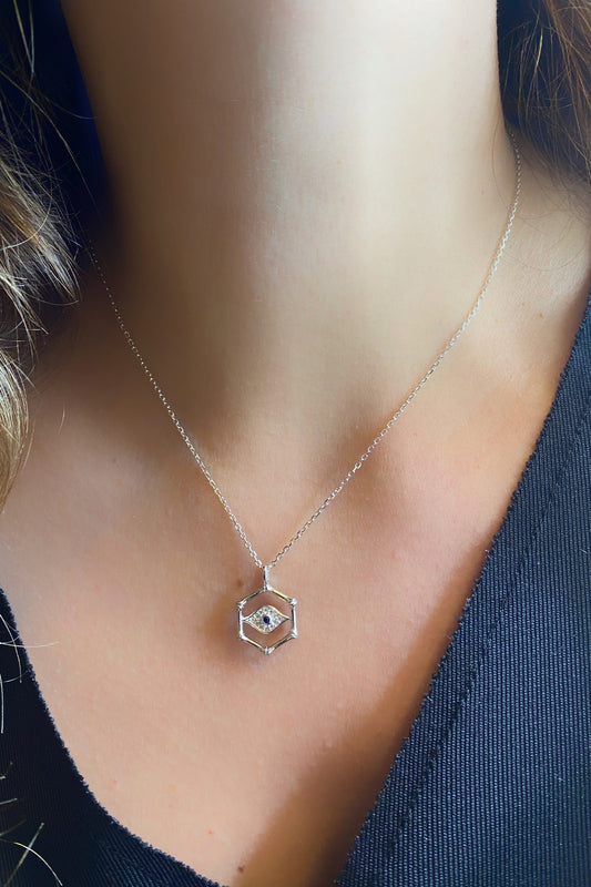 Karo ve Yuvarlak Taşlı Suyolu Gümüş Kolye