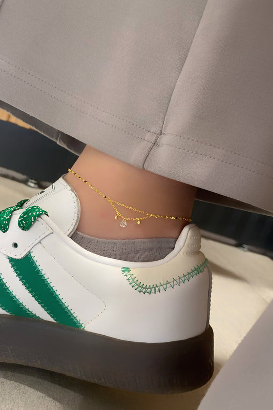 Kristal ve İki Top Sallantılı Sekiz Zincir Gümüş Halhal