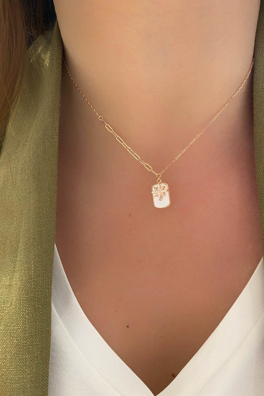 Kuzeyyıldızı Detay Dikdörtgen Gümüş Kolye