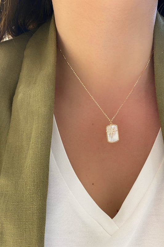 Kuzeyyıldızı Sedef Pusula Gümüş Kolye