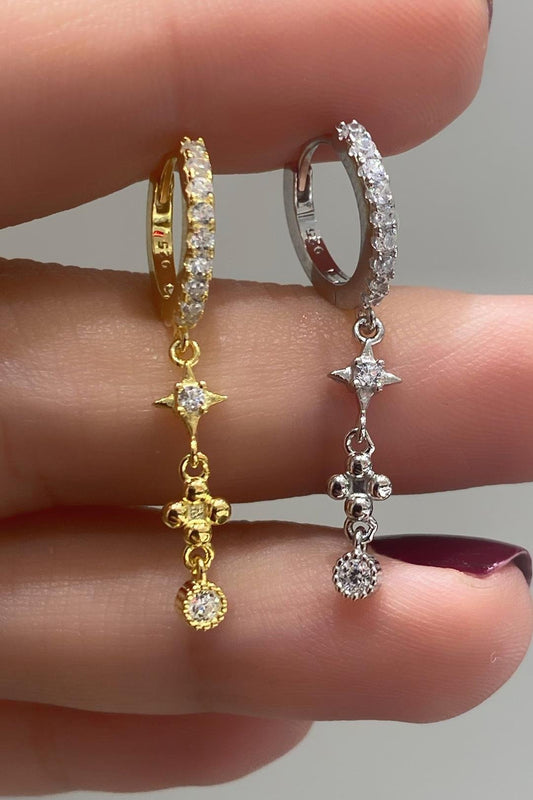 Kuzeyyıldızı Dört Top Ve Tektaş Sallantılı Gümüş Küpe