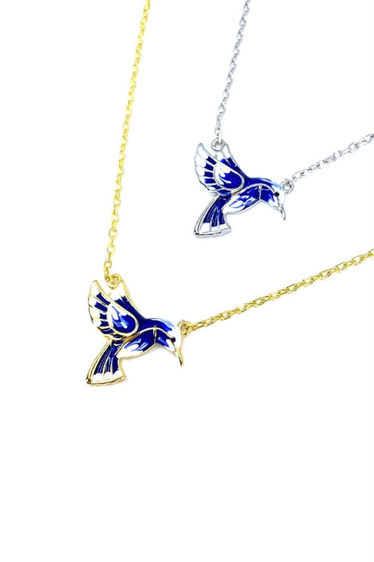 Lacivert Mineli Kuş Gümüş Kolye