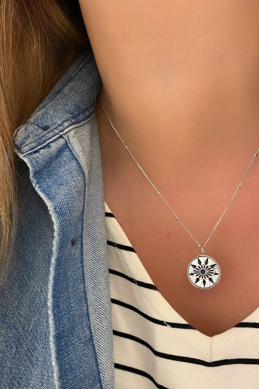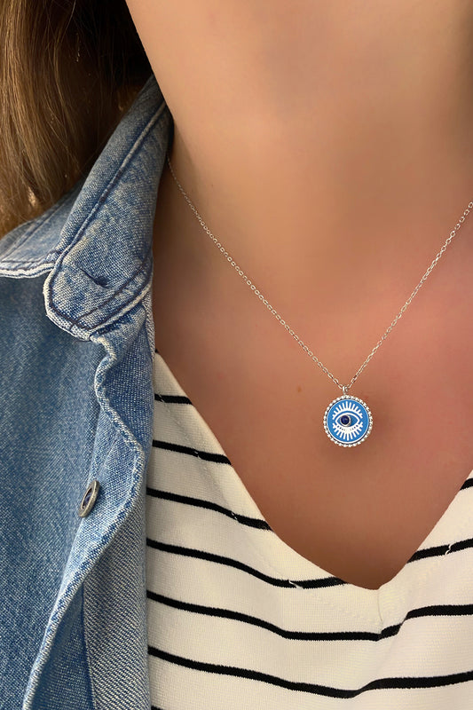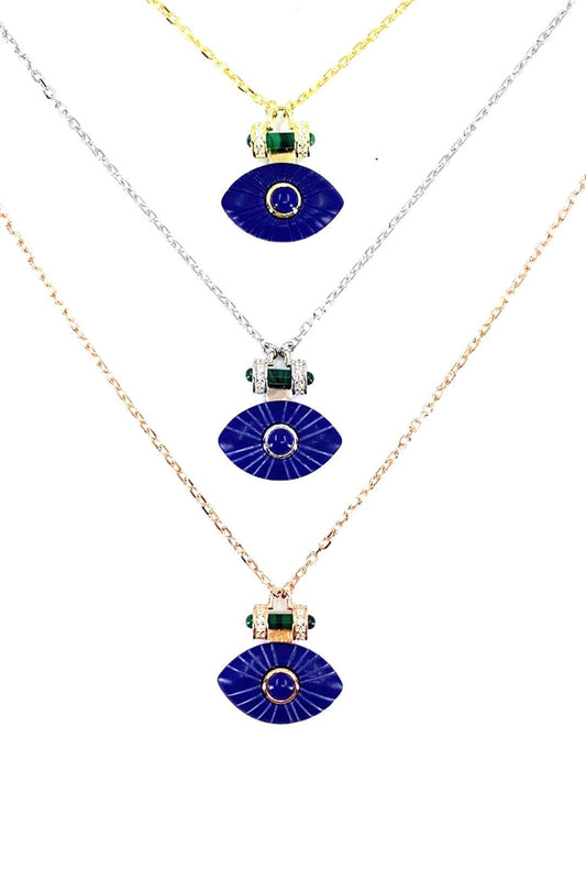 Lacivert ve Top Detay Göz Gümüş Kolye