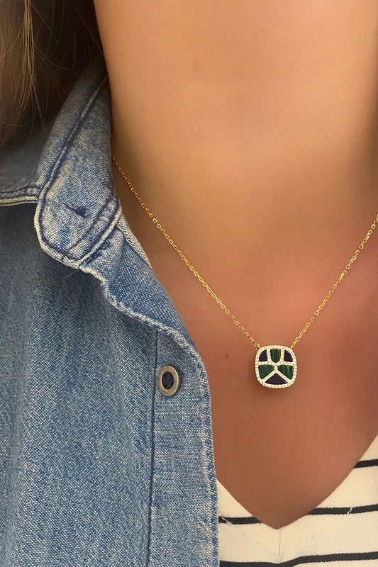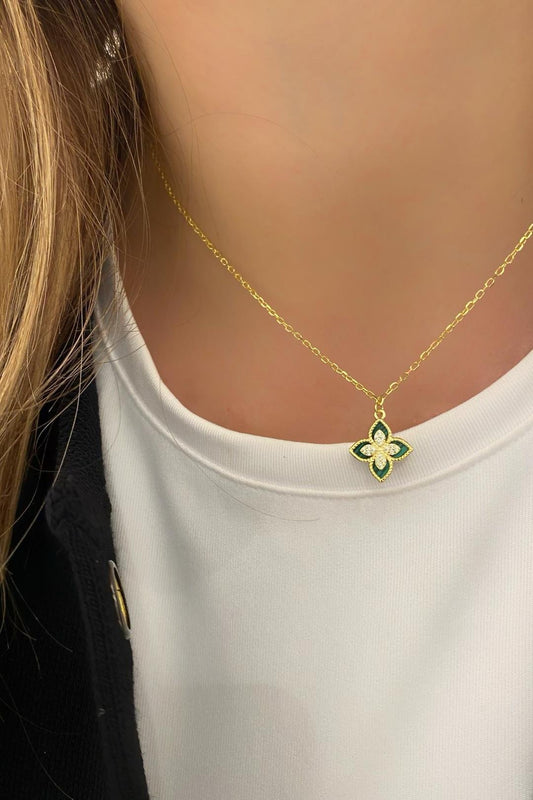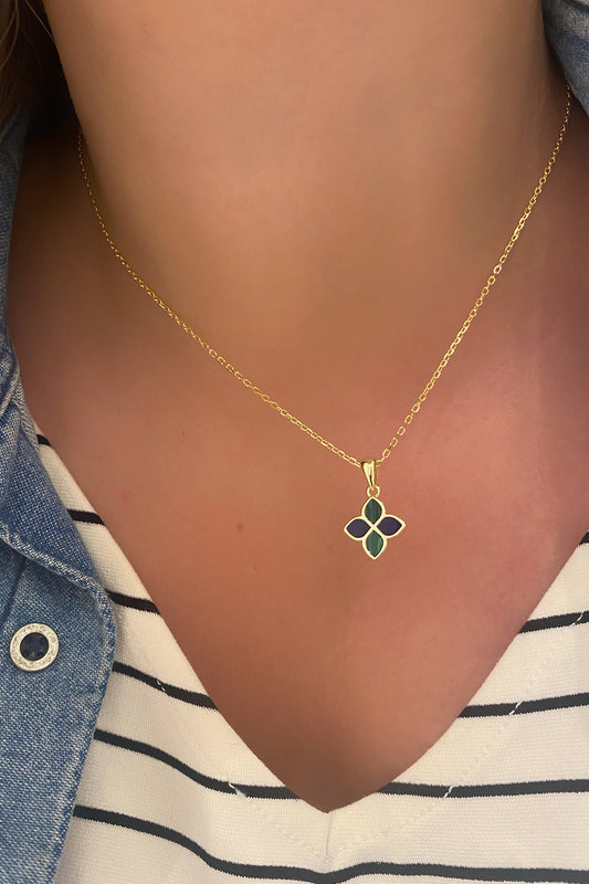 Malahit Ve Lapis Dört Yapraklı Yonca Gümüş Kolye