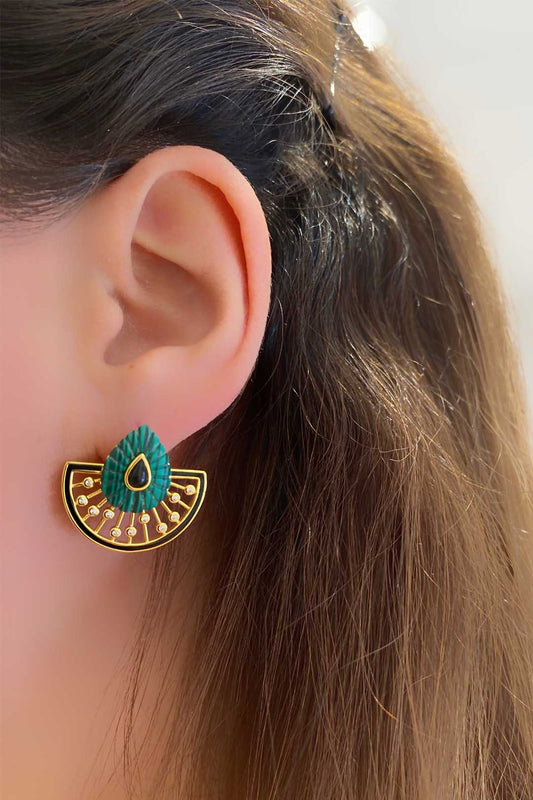 Malahit Damla ve Tohum Detay Yarım Gümüş Küpe