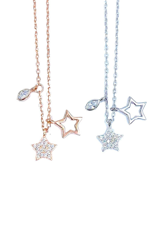 Markiz Sallantılı Taşlı Ve Taşsız İki Yıldız Gümüş Kolye