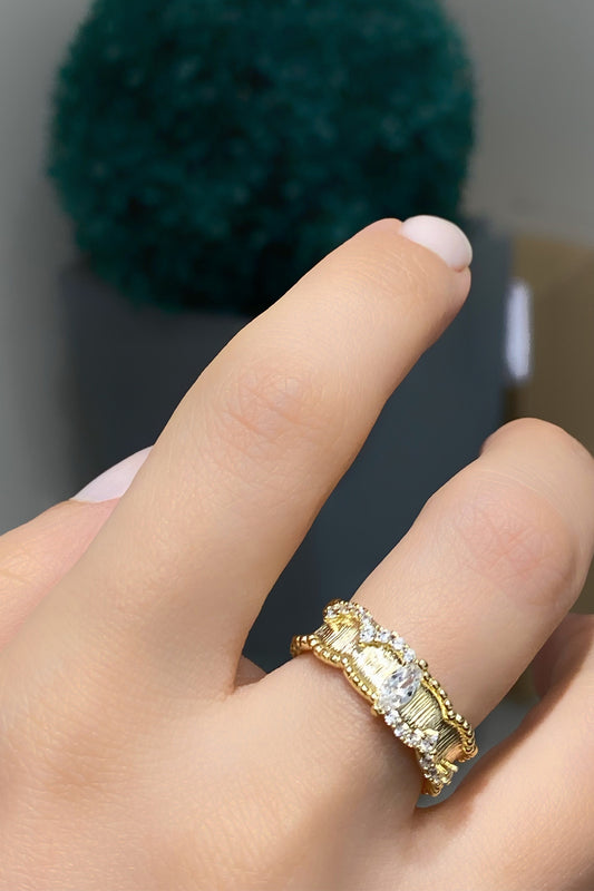 Markiz Taş Detay Dalgalı Kalın Gümüş Yüzük
