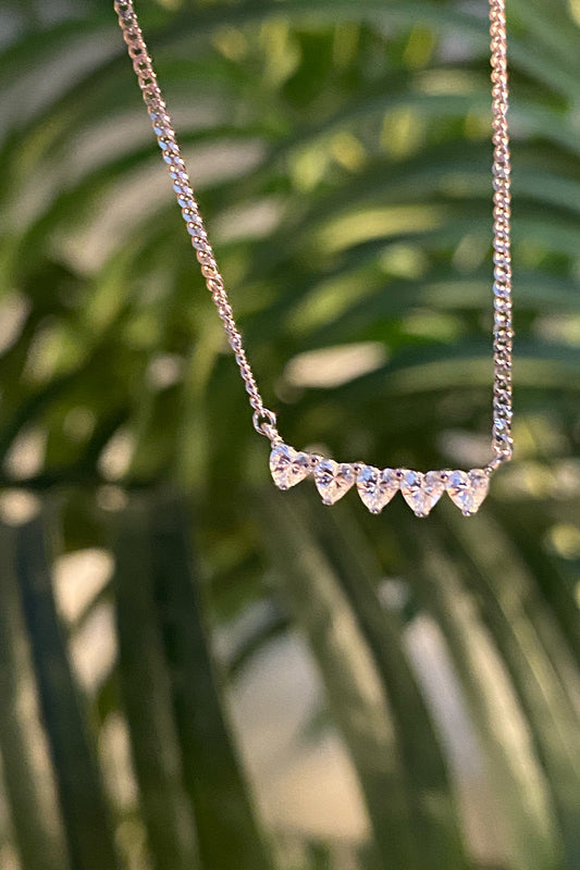 Mini Beş Yatay Beş Kalp Gümüş Kolye