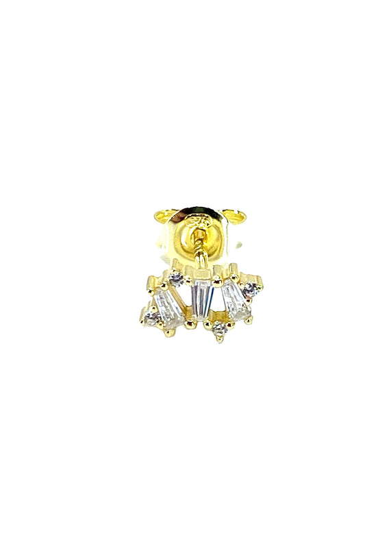 Mini Dört Taş Beyaz Baget Gümüş Halka Küpe