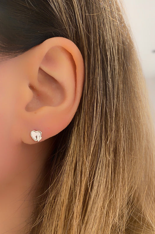 Mini Sedef Kalp Gümüş Çivili Küpe