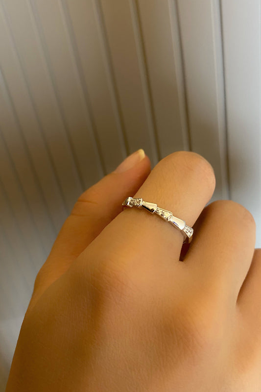 Minimal Taşlı Karo Serçe Gümüş Yüzük