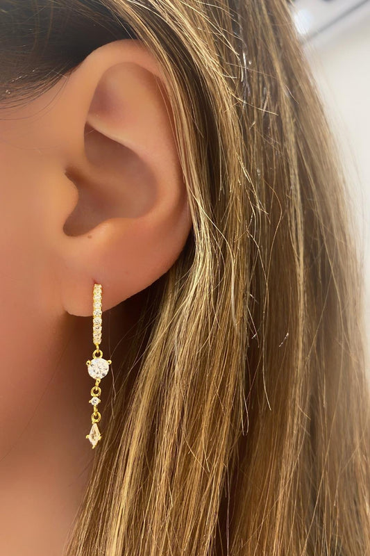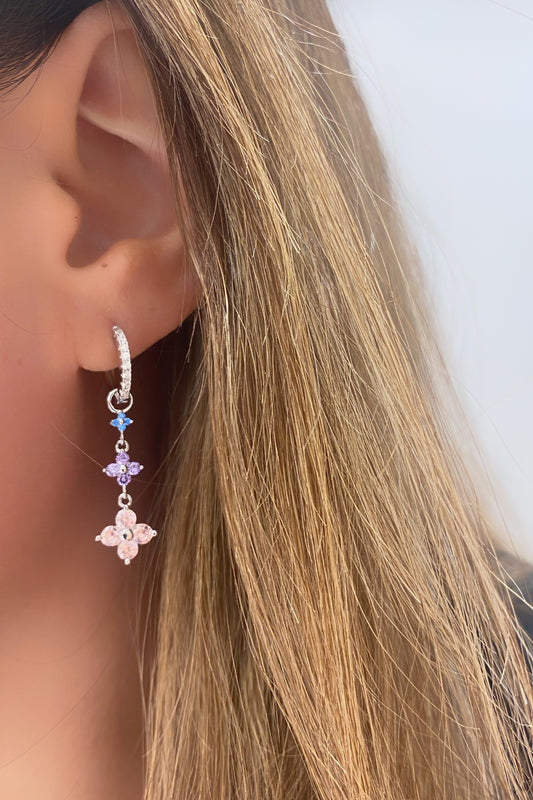 Mix Dört Taş Kare Sallantılı Gümüş Küpe