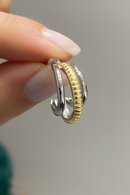 Mix İki Sıra Düz Ve Çizgili Gümüş Askı Küpe