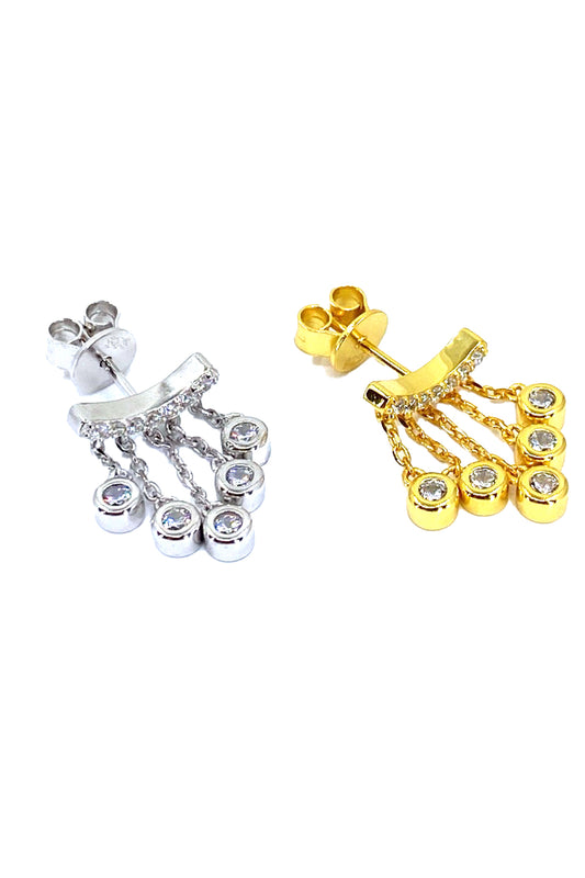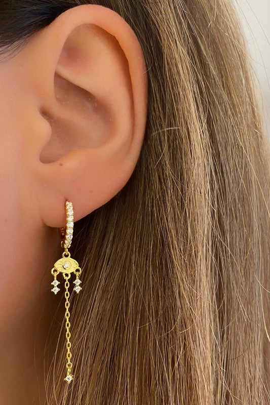 Beş Taş Sallantılı Göz Detay Gümüş Küpe