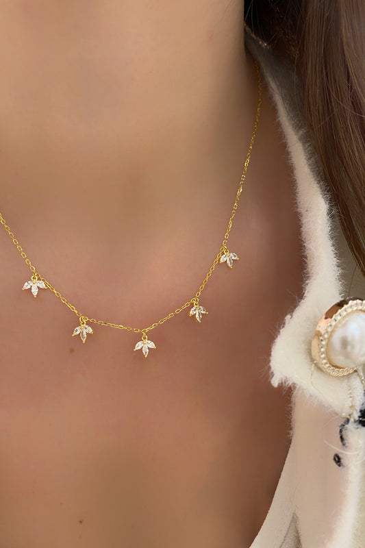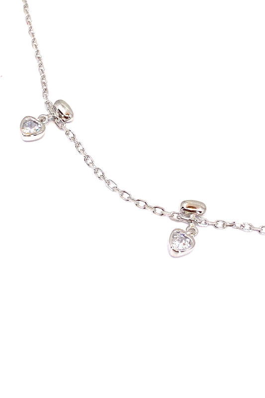 Beş Mini Kalp Ve Stick Gümüş Kolye