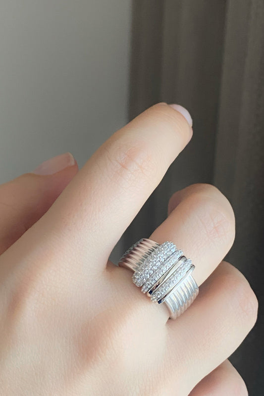 Beş Sıra Taşlı Çizgili Gümüş Yüzük