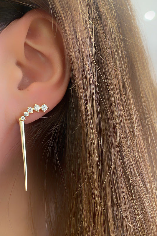 Beş Taşlı Yedi Taşsız Çizgi Gümüş Halka Küpe