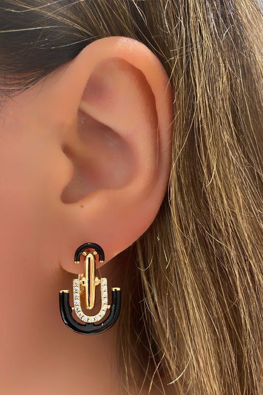 Siyah Mineli Ve Sarılı Taşlı Geo Gümüş Küpe