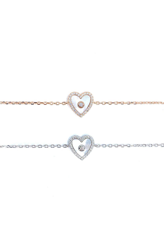 Taş Detay Sedef Kalp Gümüş Bileklik