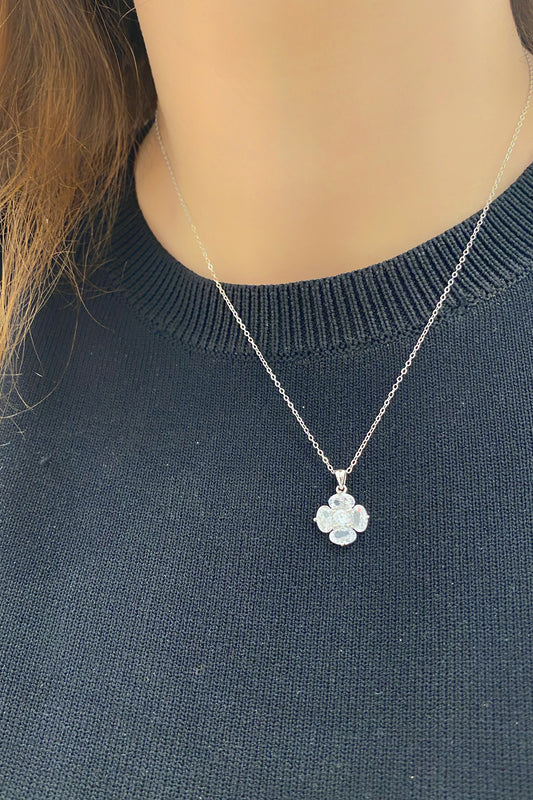 Vip Dört Oval Ve Tektaş Çiçek Gümüş Kolye