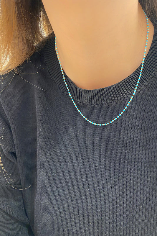 Mini Üç Tırnak Çok Taşlı Sallantılı Top Zincir Gümüş Kolye