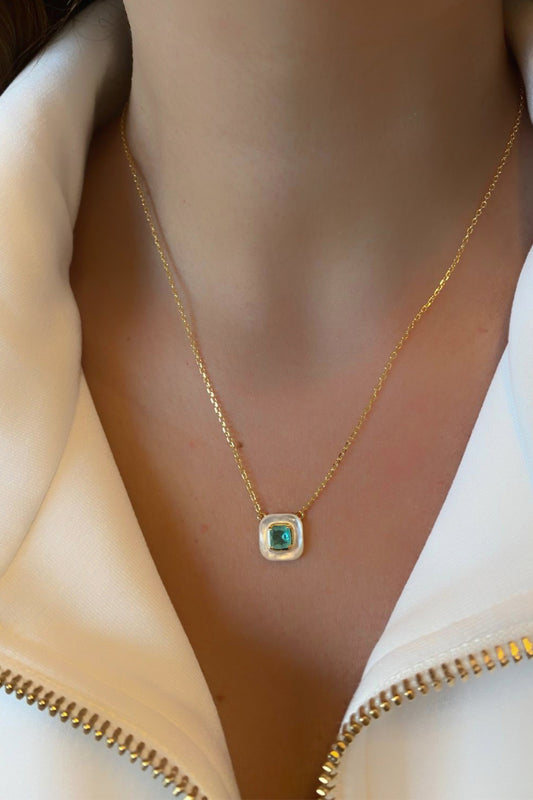 Aqua Ve Sedef Kare Gümüş Kolye