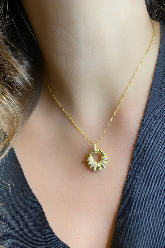 Araları Taş Detay Salyangoz Çember Gümüş Kolye