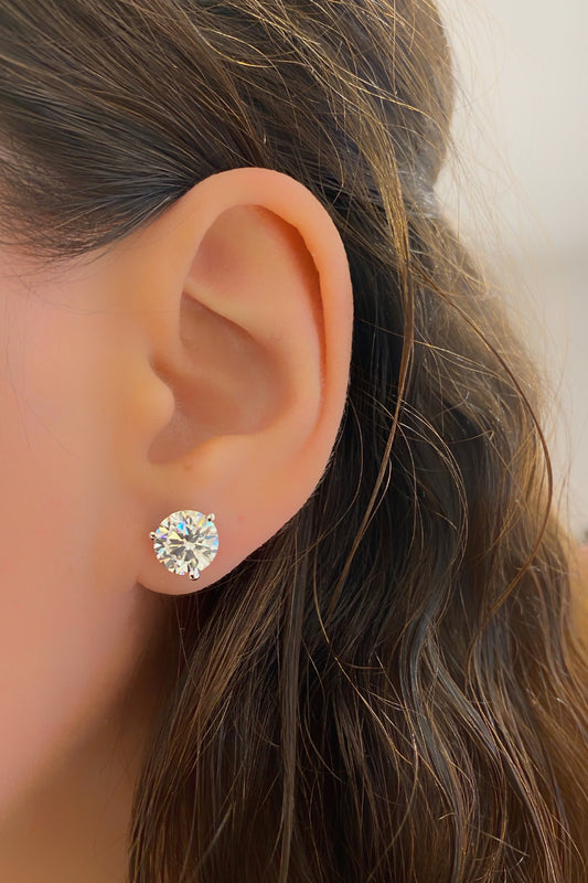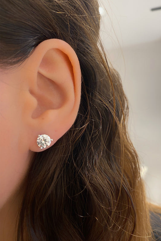 Vip 8 Mm Üç Tırnaklı Tektaş Gümüş Çivili Küpe