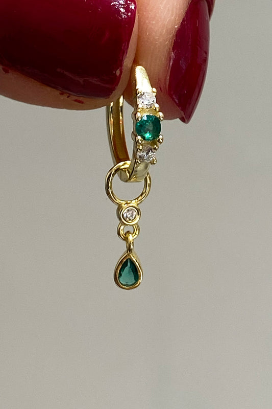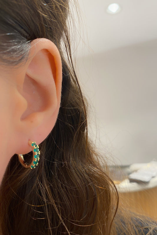 Yeşil Tohum Damla Sallantılı Mix Gümüş Halka Küpe