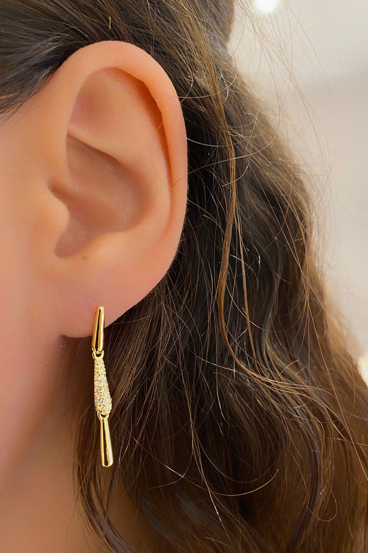 Taşlı İki Top Ve Geo Sallantılı Gümüş Küpe