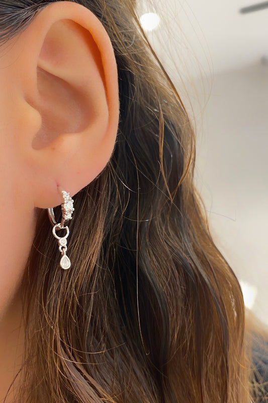 Beyaz Tohum Damla Sallantılı Mix Gümüş Halka Küpe