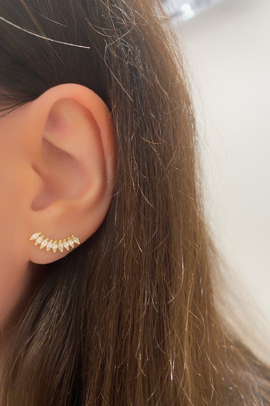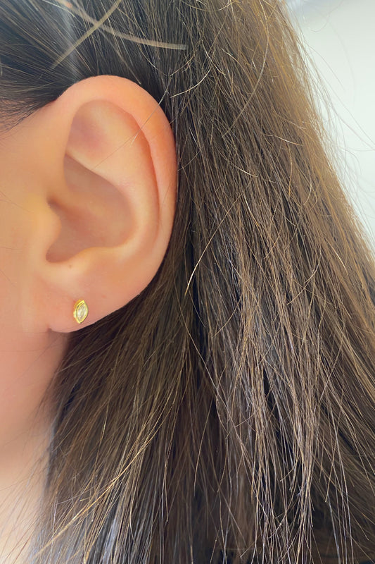 Beyaz Dokuz Markiz Yay Gümüş Çivili Küpe