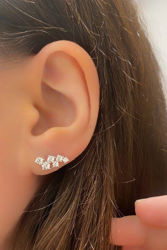 Beş Kalp Yatay Gümüş Çivili Küpe