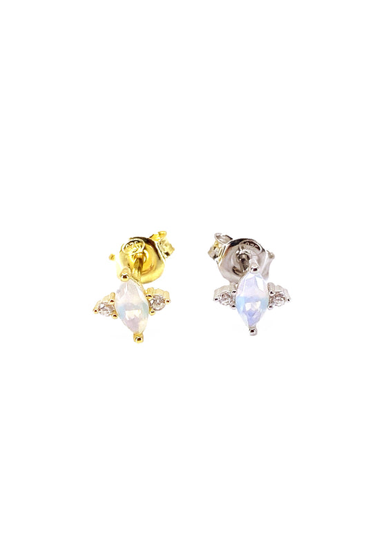 İki Tektaş Opal Markiz Yay Gümüş Çivili Küpe