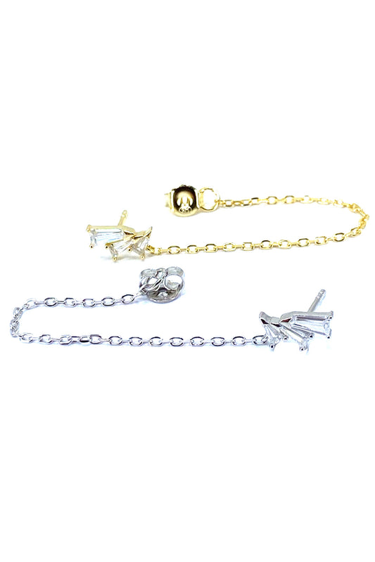 Damla Sallantılı Taşlı X Gümüş Çivili Küpe