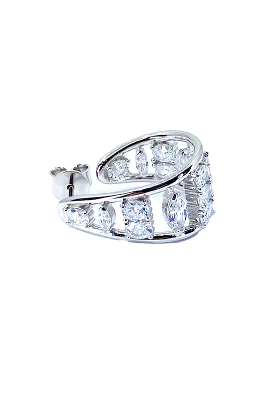 Taşlı Ve Taşsız Top Sıralı Gümüş C Küpe