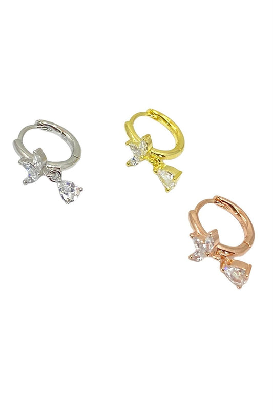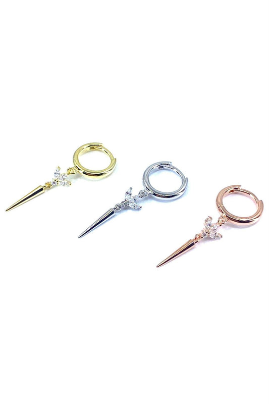 Beyaz Tektaş Baget Damla Çember Gümüş Çivili Küpe