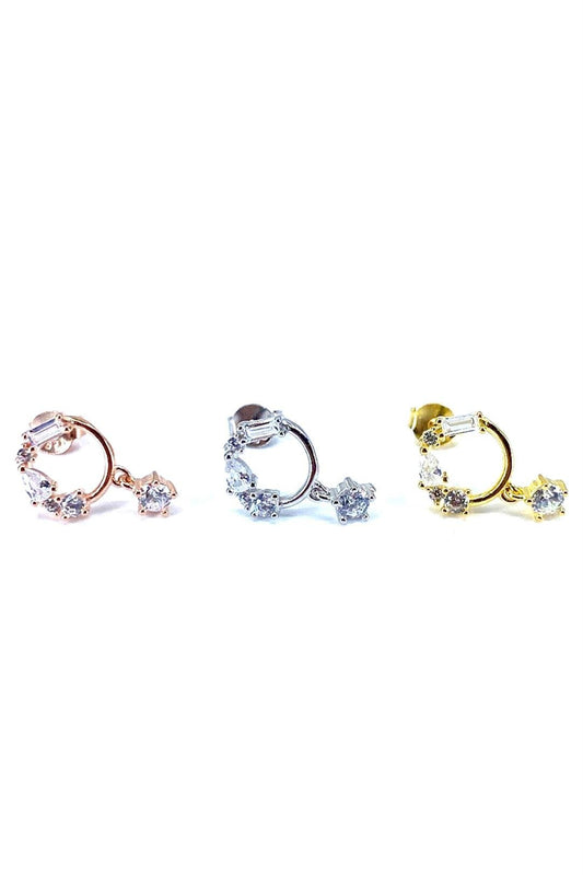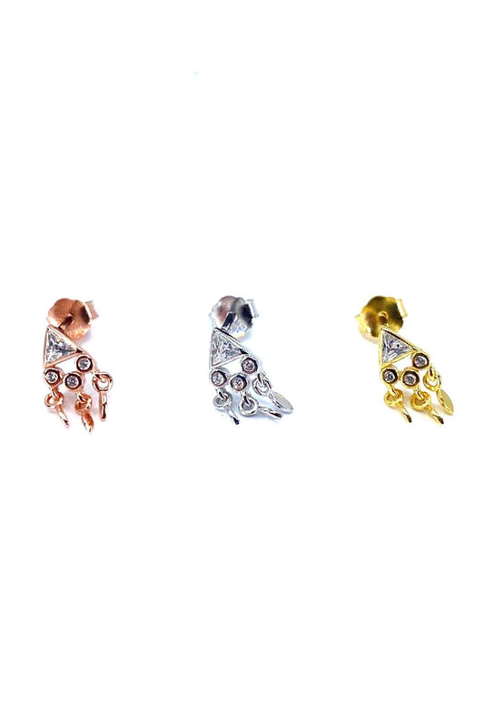 Üçgen Ve Üç Markiz Sallantılı Gümüş Çivili Küpe