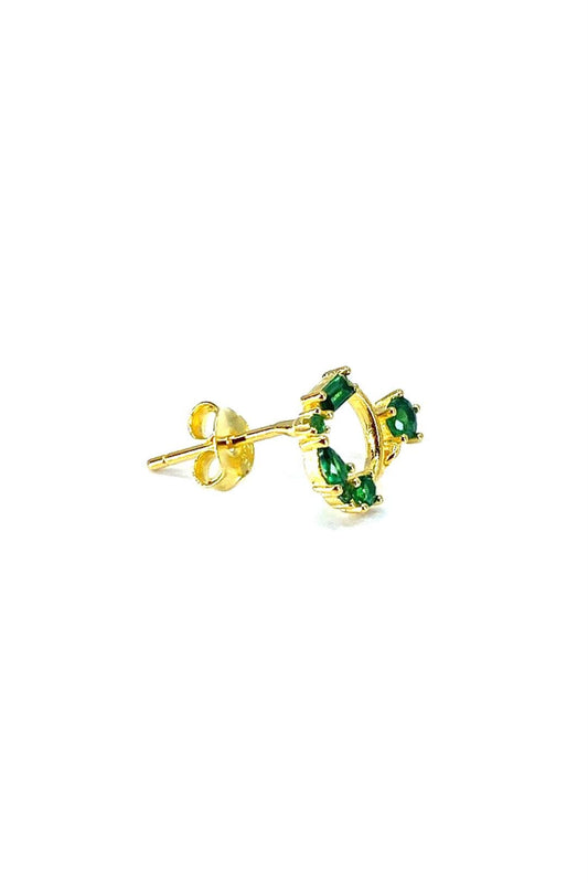 Yeşil Tektaş Baget Damla Çember Gümüş Çivili Küpe
