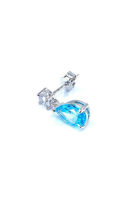 Tektaş Ve Turkuaz Damla Gümüş Çivili Küpe