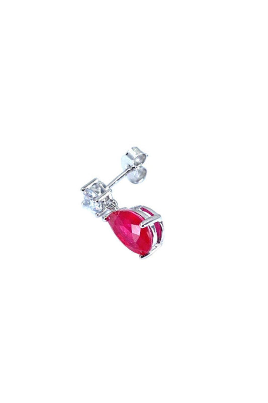 Tektaş Ve Ruby Damla Gümüş Çivili Küpe