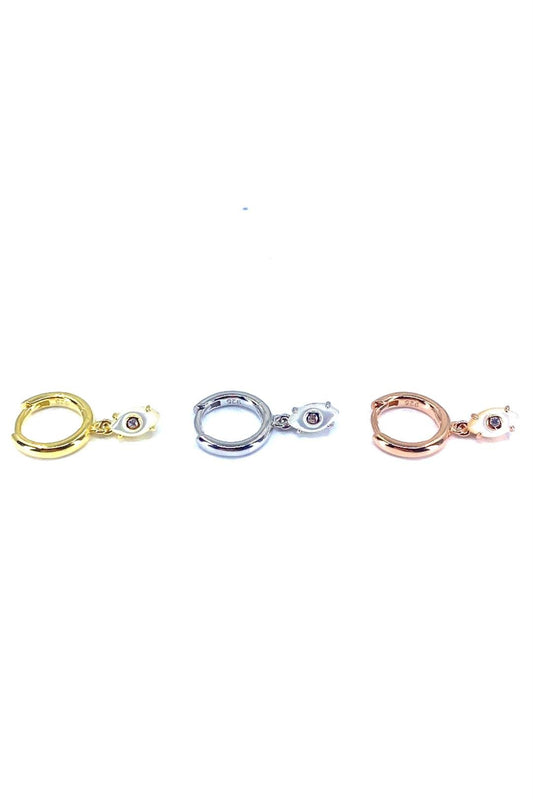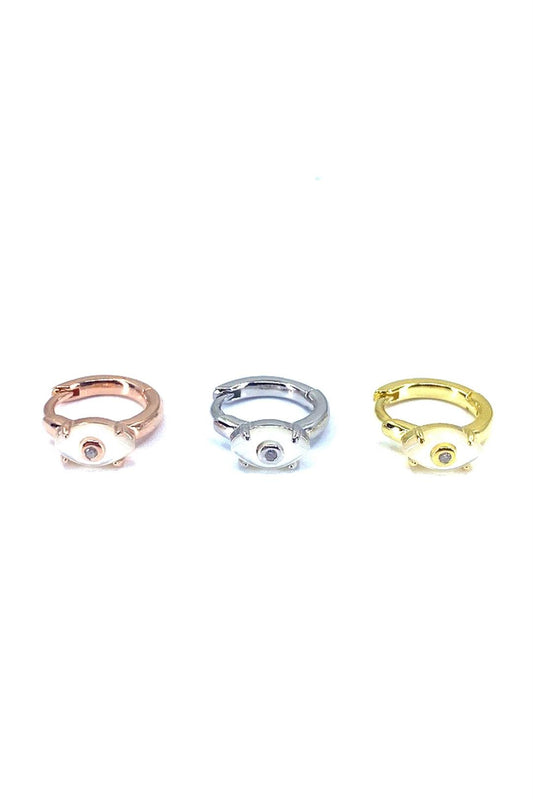 Taş Detay Beyaz Göz Gümüş Halka Küpe