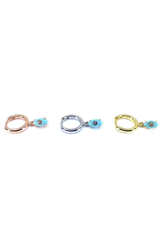 Taş Detay Turkuaz Göz Sallantılı Gümüş Küpe