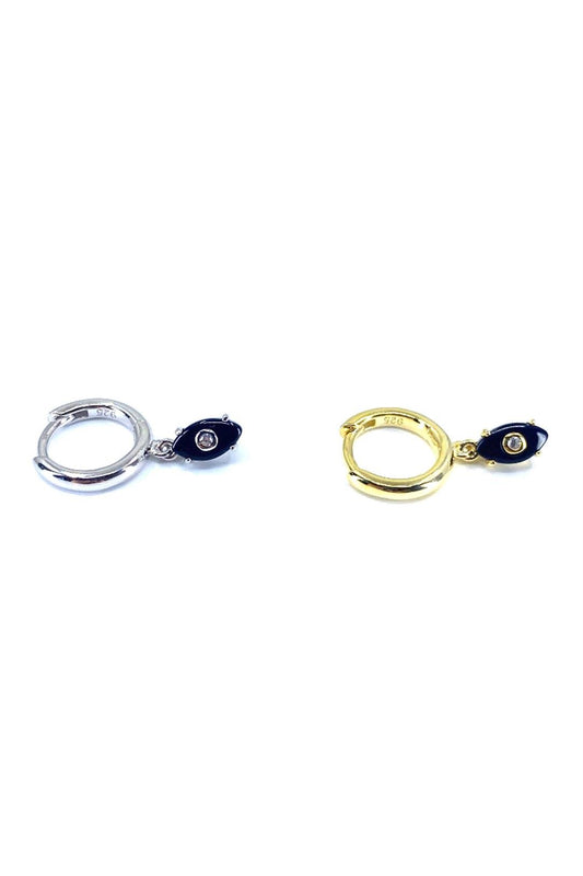 Taş Detay Siyah Göz Sallantılı Gümüş Küpe