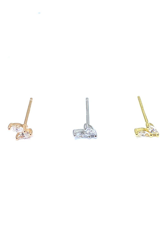 Üç Tektaş Çiçek Yay Gümüş Çivili Küpe
